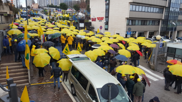 La  consegna simbolica di un  cinghiale di cartapesta alla Regione Basilicata è stato il momento clou della  manifestazione organizzata a Potenza in mattina da Coldiretti Basilicata per  denunciare quella che ormai è diventata una vera e propria emergenza che necessita di risposte immediate. Un  “fiume giallo” composto da oltre un migliaio di agricoltori  partito dalla sede regionale della Coldiretti che ha attraversato la città per confluire poi dinnanzi alla sede della Giunta regionale dove si è svolto il sit in. “Per la presenza invasiva  dei cinghiali, in Basilicata sono a rischio 10 mila aziende  e circa 300 mila  ettari di terreno coltivato. E’ risaputo che il cinghiale provoca, oltre al danneggiamento diretto alle colture, anche un notevole rischio per l’incolumità delle persone e la possibilità di danni a beni, soprattutto in relazione agli incidenti stradali – hanno sottolineato nei loro interventi il presidente di Coldiretti Basilicata, Piergiorgio Quarto, e il direttore regionale, Aldo Mattia – le zone protette, che in Basilicata rappresentano un’area di circa il 30% dell’intera superficie regionale, sono diventate un polmone di riproduzione ed irradiazione per tutta la Regione. Il tasso riproduttivo del cinghiale (due parti all’anno e da 5 a 8 piccoli a parto) può portare la presenza in un anno a raddoppiare o triplicare”. Nel corso della manifestazione è stato illustrato anche lo scenario dell’emergenza in Basilicata,  dove ci sono –  fa sapere Coldiretti – 123 mila  cinghiali stimati al 31 dicembre 2015, rispetto ad una soglia sostenibile di 23.000 presenze (dati Regione Basilicata). Sono stati circa 300 gli incidenti stradali nell’ultimo biennio causati da cinghiali e che hanno provocato danni per circa 300 mila  euro, circa 4 milioni di euro i danni alle colture soltanto negli Ambiti Territoriali di Caccia (ATC), circa 16 mila i cinghiali abbattuti nell’ultimo biennio con il prelievo venatorio e circa 2 mila gli esemplari  abbattuti con attività di selecontrollo negli ATC. La maggior parte dei  danni e degli incidenti sono localizzati in prossimità di aree parco e riserve (dati Regione Basilicata).