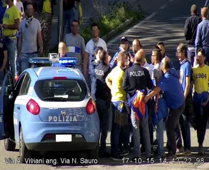Accusati, a vario titolo, di aver acceso fumogeni dentro e fuori lo stadio “Viviani” di Potenza, lo scorso 15 ottobre, e di aver rubato,e sotto la minaccia di una mazza da baseball, una bandiera a un supporter della squadra rossoblu’, per sette tifosi – di eta’ compresa tra i 48 e i 21 anni – del Cerignola (girone H della serie D) e’ stato emesso il Daspo. Il divieto di assistere alle manifestazioni sportive sara’ per tre tifosi per cinque anni e per tre anni per gli altri quattro. Stamani, in una conferenza stampa, il Questore del capoluogo lucano, Alfredo Anzalone, e il dirigente della Digos, Michele Geltride, hanno illustrato i particolari delle indagini, che, anche grazie alle immagini riprese dalla Polizia scientifica, hanno permesso di identificare i sette tifosi, i quali sono stati anche denunciati in stato di liberta’ alla magistratura. Gli episodi che hanno portato ai Daspo sono accaduti prima e alla fine della partita vinta dalla formazione di casa per 3-0.