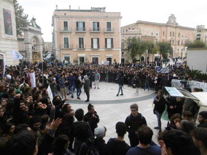 Migliaia di studenti sono scesi in strada questa mattina a Matera, su iniziativa del movimento “Studenti 21”. Il lungo corteo, partito da piazza della Visitazione ha attraversato le principali strade cittadine per concludersi nella centralissima piazza Vittorio Veneto con gli interventi di alcuni dei promotori della protesta. nel corso della manifestazione gli studenti dei licei e degli istituti superiori della Città dei Sassi hanno rilanciato slogan e mostrato decine di striscioni . In particolare hanno portato all’attenzione di tutta la città le problematiche che condizionano la loro vita ed il loro futuro. “La biblioteca, il teatro,l’università, le scuole, quelli che dovrebbero essere i luoghi centrali per la cultura di una città, nella futura capitale europea non funzionano – hanno sottolineato i manifestanti – lo sanno bene tutti i cittadini, ma pochi hanno il coraggio di alzare la voce e dire pubblicamente che la nostra biblioteca provinciale, tra le più importanti del mezzogiorno, è abbandonata a se stessa, senza direttore e con personale insufficiente. Nessuna scuola materana è a norma per la sicurezza, mancano attrezzature tecnologiche e gli spazi sono spesso inappropriati; il liceo Musicale, dopo sette anni dalla sua nascita, non ha ancora una propria sede e attrezzature adeguate. Non ci sono spazi liberi dove gli studenti possano incontrarsi, discutere o semplicemente studiare insieme gratuitamente, il nostro cineteatro “Duni”, citato nei libri di architettura, resta chiuso per la maggior parte del tempo e quest’anno non potrà ospitare il ‘banco della solidarietà’ – hanno concluso – e l’’Università a Matera è incapace di trattenere i giovani, che ogni anno sono costretti ad abbandonare la loro terra per poter continuare a studiare”.