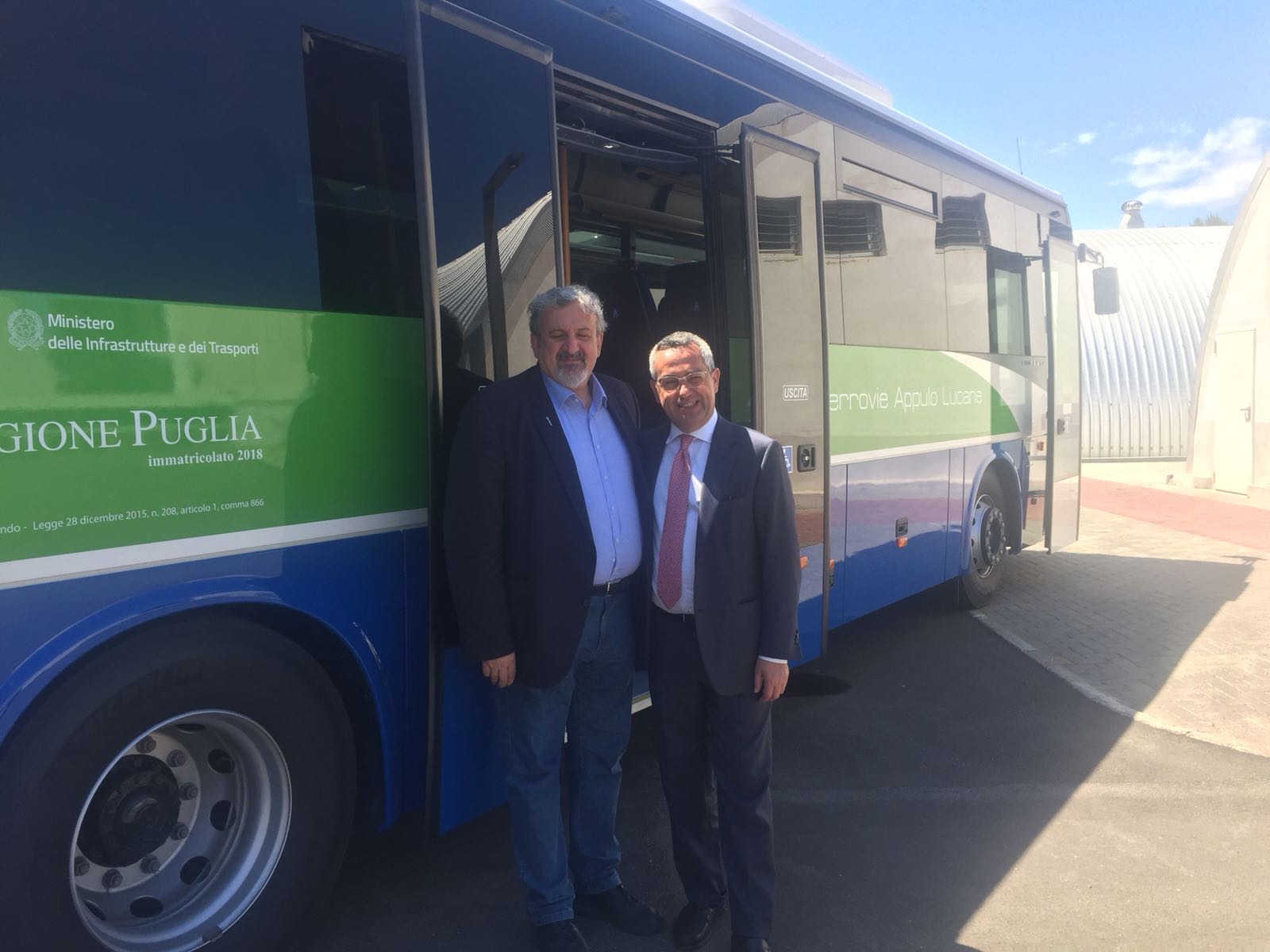 Il servizio di trasporto offerto in Puglia e Basilicata dalle Ferrovie Appulo Lucane su gomma e su ferro si arricchisce da oggi ulteriormente con 9 autobus, 3 carrozze per treni e la nuova officina di Bari scalo. La presentazione dei mezzi e dell’infrastruttura si e’ tenuta nel capoluogo pugliese alla presenza, tra gli altri, del presidente delle Fal, Matteo Colamussi, e del presidente della Regione Puglia, Michele Emiliano.